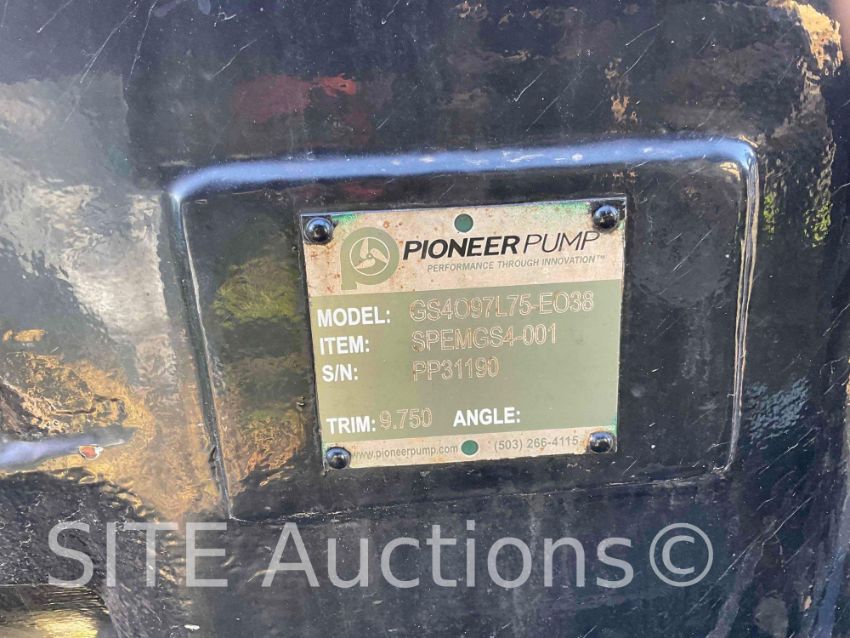 Deutz 4 Cylinder diesel Engine 78HP, 6X6 Pioneer pump, self-priming, up to 3in. Solids, 1103 hours, S/N: PP31190, Engine cranks and runs, Has some damage, No title, Sold with Bill of Sale only