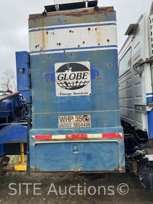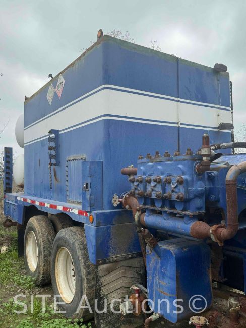 Volvo VE D12 Diesel engine, Eaton Fuller 10 Spd, Spring Susp, Outfitted by Rush Overland, 7.5 million BTU Burner, Dual 100 gal propane tanks, 70BBL Square tank, Hardline rack w/ 5x hardline Jts, Gardner-Denver Tee F Triplex Pump 10K PSI MAWP, Dressed for 5K PSI, GPI Discharge Digital Flow Meter (missing display screen), Bowie Feed Pump, Viking Load C Pump, 20000lb fronts, 46000lb rears, 19000 hours, 53000 miles, VIN: 4V5KC9GH65N394310, Runs & operates as it should