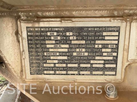 5335 gal. capacity, 2 compartments, VIN: 1W9T22261WL010082