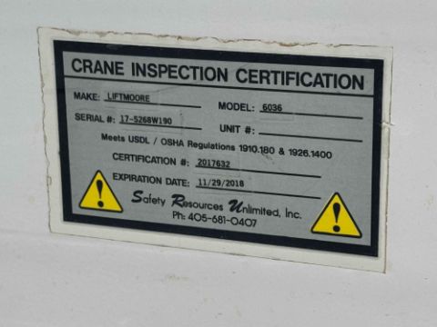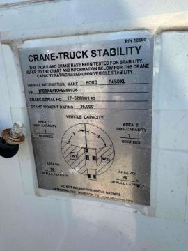 V8 6.7L Diesel engine, A/T, 4x4, Liftmoore 6036 Crane w/ 22ft. max lift height & 6000lb. max lift capacity S/N: 175268W190, Vanair 5kW 20CFM Contractor, 275793 miles, VIN: 1FD0X4HT4HEE98926