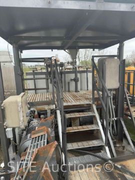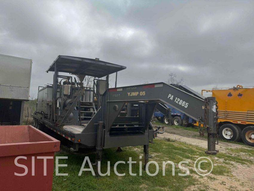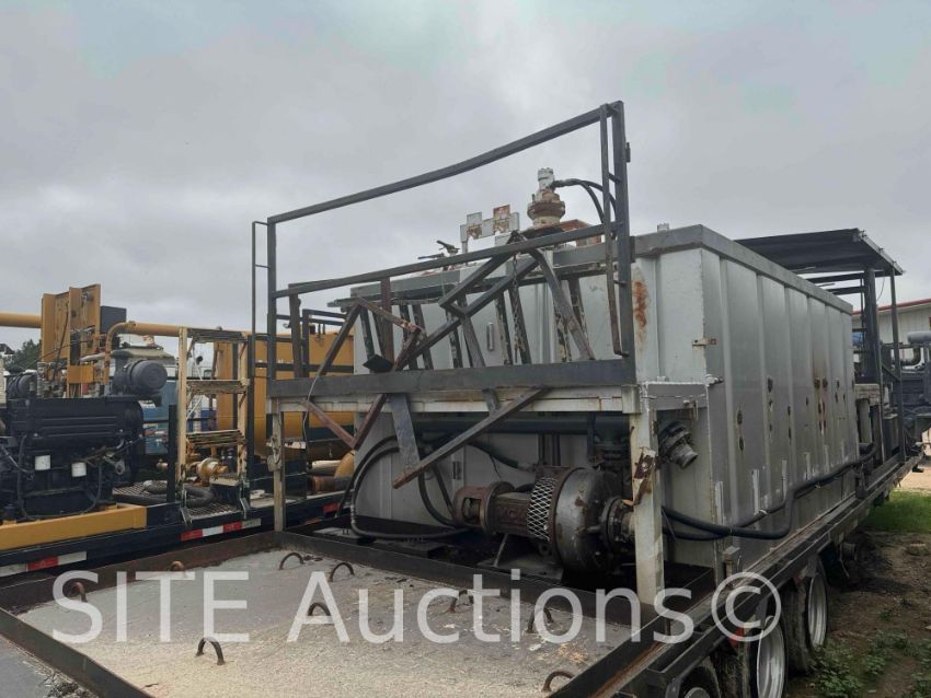 80BBL tank split to 60BBL & 20BBL w/ agitators and speed control, 3x MCM 250 3in.x4in.x13in. Hydraulic driven C pumps, 2x 60 amp electric motors, 1x 50 amp electric motor, Chemical hopper on front tank, Plumber into mixing manifold, Explosion proof electrical run boxes, motors & connections, Stairs & catwalk in front & rear of tank, 2x removeable stairs for each tank, LED Work lights, Generator mount on front of gooseneck, Hydraulic raising roof & front stabilizing jack, Manual front landing gear, Trailer GVWR 48000, VIN: 1D9GF3637E1664066, Titled, All pumps turn by hand, No generator