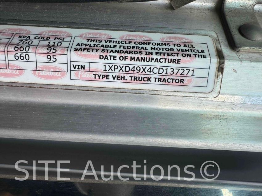 Cummins Diesel engine, Eaton Fuller 8LL, A/R Susp, 60in Integrated Sleeper, GVWR 52000, 8535 hours, 224891 miles, VIN: 1XPXD49X4CD137271
