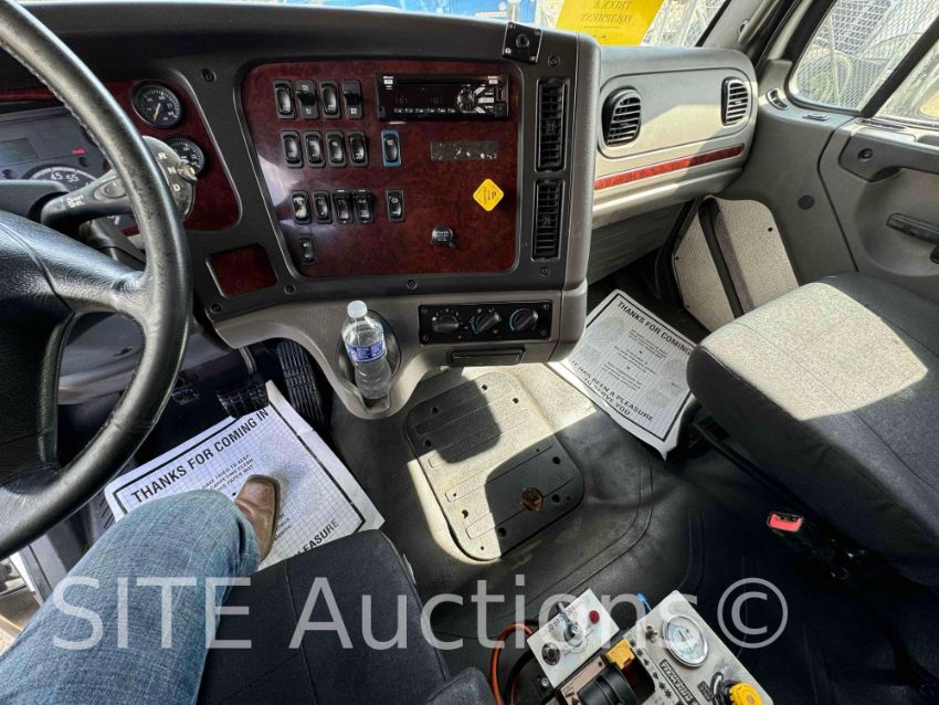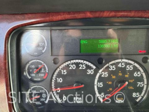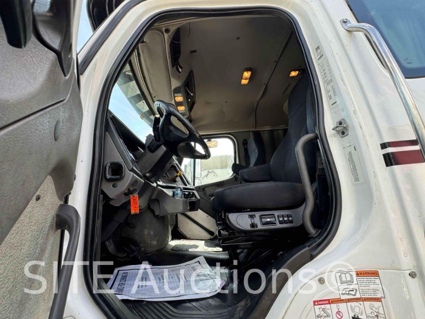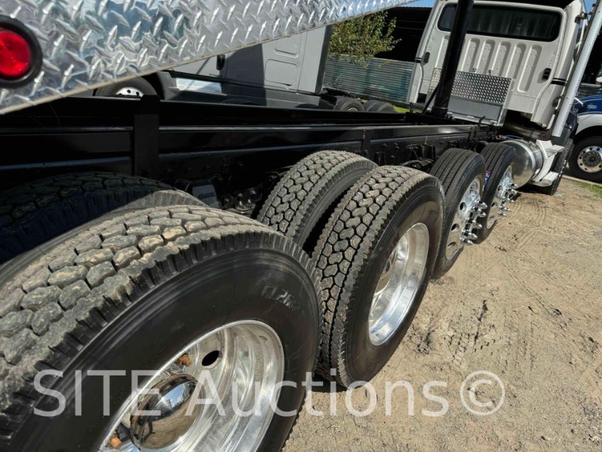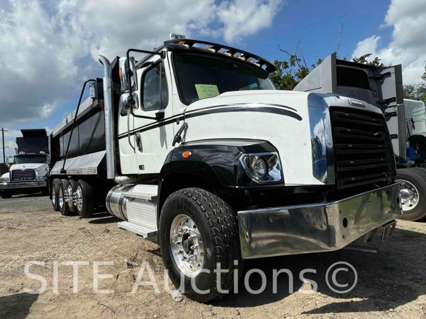 Detroit Diesel DD13 410HP Diesel engine, Eaton Fuller Advantage A/T, A/R Susp, PTO, Extended Cab w/ Sleeper, Double frame, Diff lick, New 20ft. Steel Semi-Round Bottom Bed, Electric tarp, New tires, Aluminum wheels, GVWR 68000, 5885 hours, 136508 miles, VIN: 1FVMG3DV1KHKG1680 CA Compliant