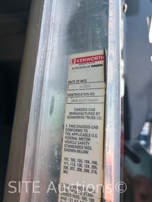 Cummins ISX15 Diesel engine, DEF Deleted, Eaton Fuller 10 Spd, A/R Susp, Double frame, 16ft. bed, Double steering boxes, Full lockers, 20000lb. front axle, 20000lb. pusher, 46000lb. rears, 14022 hours, 330335 miles, VIN: 1NKDL40X2FJ466690