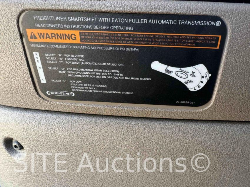 Detroit Diesel DD15 engine, Eaton Fuller A/T w/ Freightliner SmartShift, A/R Susp, Double bunk sleeper, GVWR 52000, 17507 hours, 843215 miles, VIN: 3AKJGLD66FSGL9720, Rebuilt title
