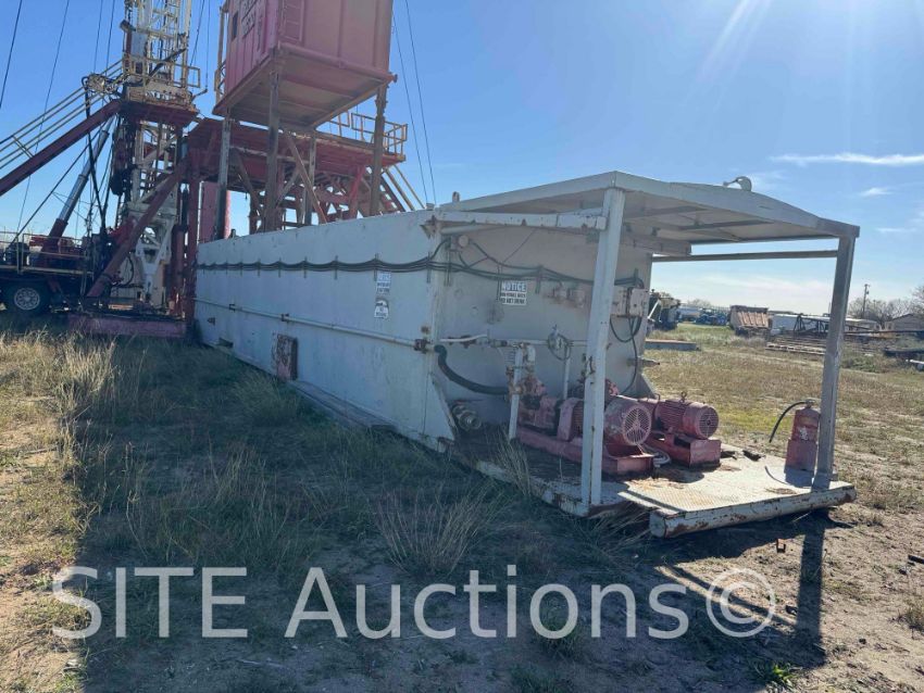1- 425BBL mud tank w/ 4 agitators, 3 mud guns, 2 skid mounted centrifugal pumps w/ 60HP electric motors, Hopper w/ explosion proof lights