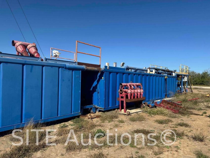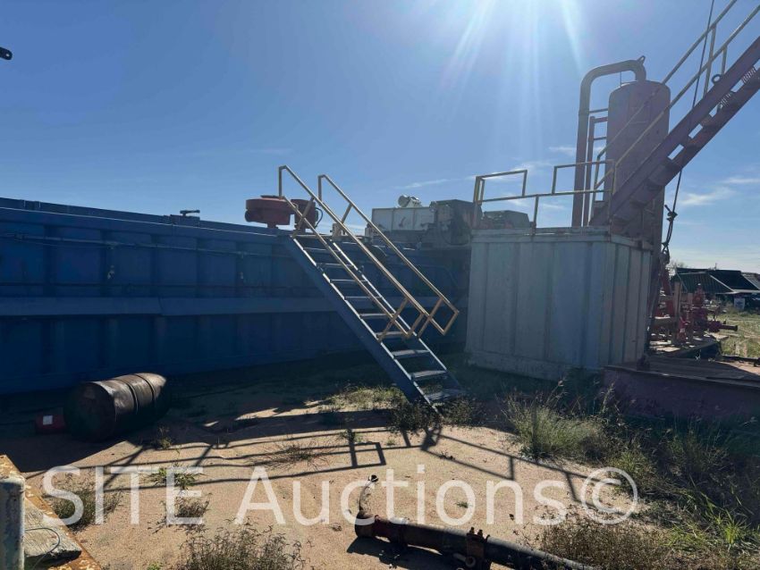 MUD TANKS: 850 bbs/ capacity, 1- 425BBL mud tank w/ 2 liner motion shale shakers, 1 agitator, 2 mud guns, 2 cone desander, 10 cone degreaser, 2 skid mounted centrifugal pumps w/ 60 HP electric motors