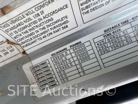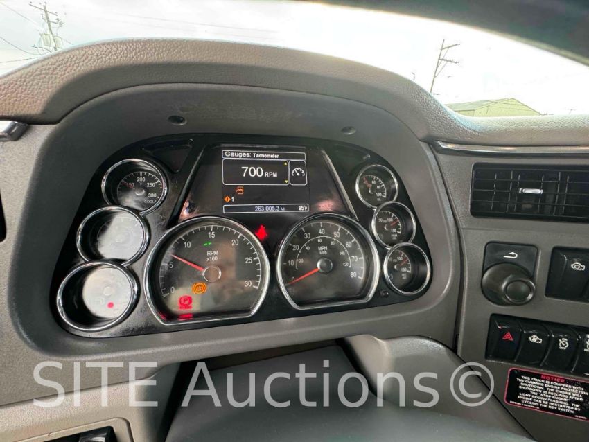 Cummins ISX 500HP Diesel engine, Eaton Fuller 13 Spd, DEF Deleted, 20ft. Steel bed, Electric tarp, Double frame, Double steering, 300in. wheelbase, New tires, Aluminum wheels, 20000lb. fronts, 13000lb. airlift steerable axles, 46000lb. rears, 263005 miles, VIN: 1NPCL40X7FD276601