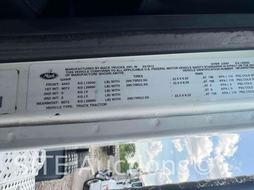 Mack MP7 Diesel engine, Eaton Fuller 10 Spd, A/R Susp, GVWR 52000, 308086 miles, VIN: 1M1AW02Y2DMO28659