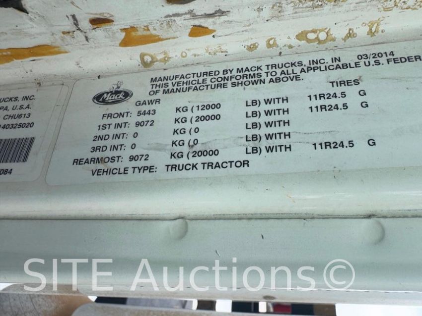 Mack MP8 Diesel engine, Maxitorque ES 10 Spd, A/R Susp, 12000 fronts, 10834 hours, 511063 miles, VIN: 1M1AN07Y7FM018689