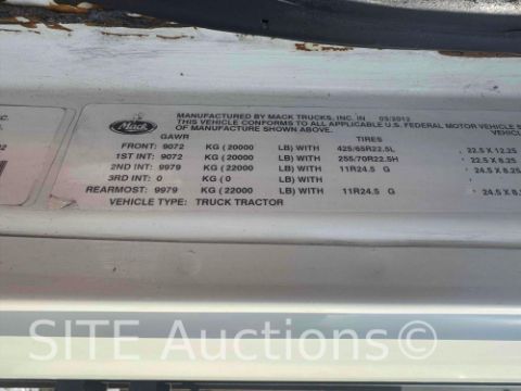 Mack MP10 Diesel engine, Maxitorque ES 18 Spd, A/R Susp, 20000 fronts, 20000 drop axle, 44000 rears, 17653 hours, 495417 miles, VIN: 1M1BD01Y1DM001433