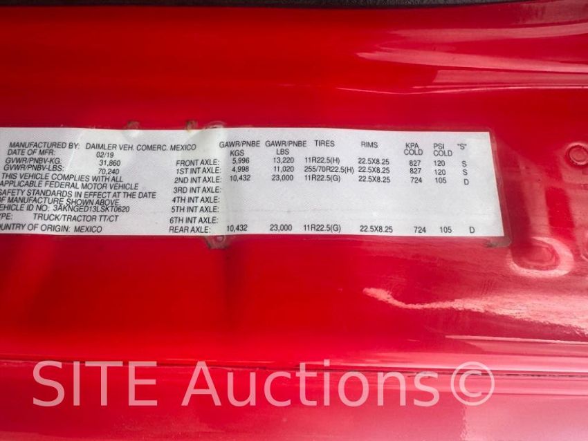 Detroit Diesel DD16 engine, Freightliner 10 Spd, A/R Susp, 13220 front, 11000 drop, 46000 rears, 525171 miles, VIN: 3AKNGED13LSKT0620