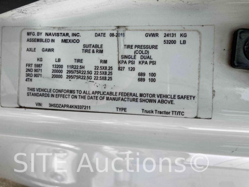 Cummins X15 400HP Diesel engine, A/T, A/R Susp, Double Bunk Sleeper, GVWR 53200, 512776 miles, VIN: 3HSDZAPR4KN337211