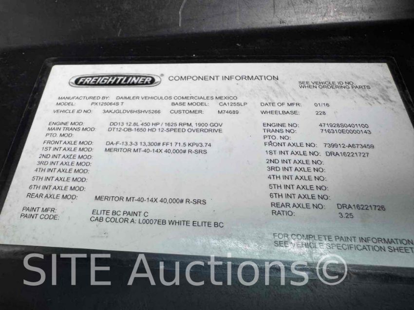 Detroit Diesel DD13 12.8L 45HP Diesel engine, DT12 A/T, A/R Susp, Double bunk sleeper, 228in. wheelbase, 3.25 gear ratio, 13300lb. front axle, 40000lb. rears, 690558 miles, VIN: 3AKJGLDV6HSHV5266