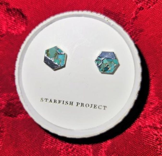 Hexagonal silver and turquoise stud earrings from the Starfish Project