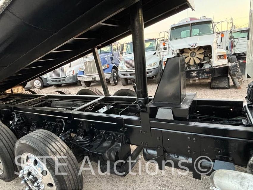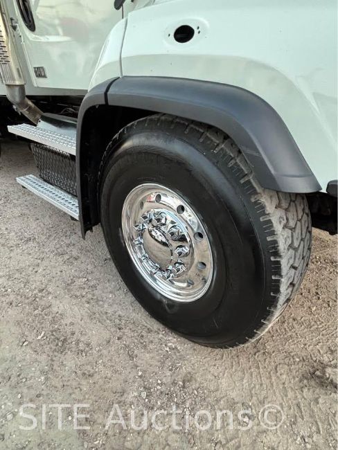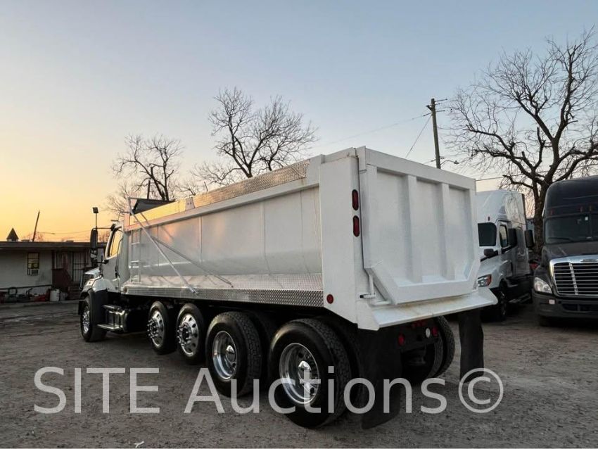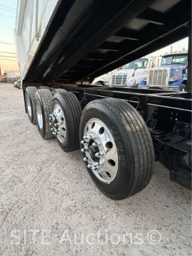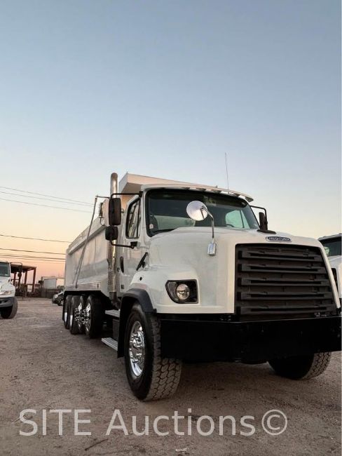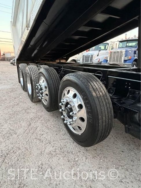 Detroit Diesel DD13 410HP engine, Eaton Fuller A/T, A/R Susp, Double frame, New 20ft. Semi-Round Dump Bed, Electric tarp, New tires, 16000lb. front axle, 20000lb. pusher axle, 40000lb. rears, GVWR 76000, 252046 miles, VIN: 3ALHG3DV9FDGM1452