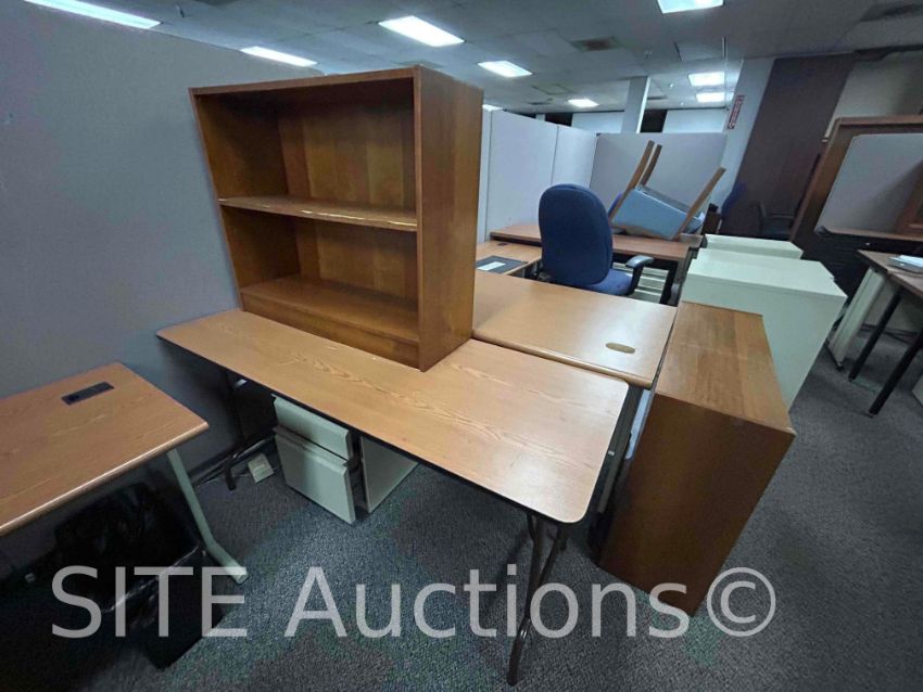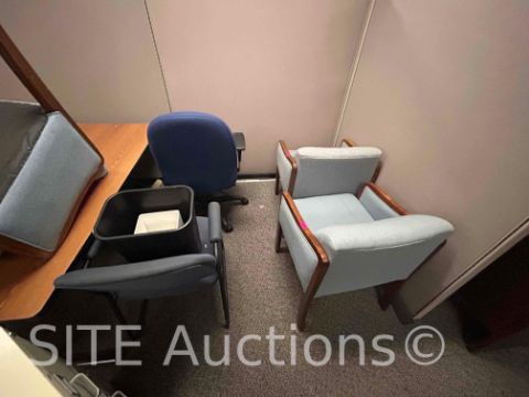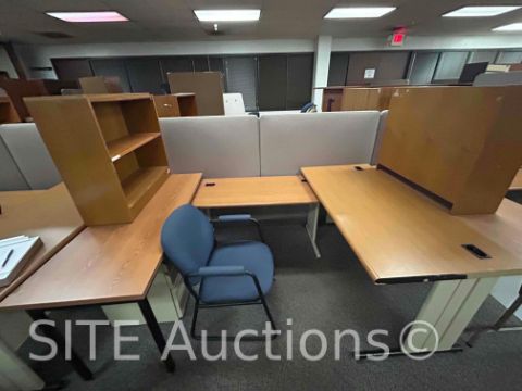 11 Cubicles, 21 Desks, 9 Chairs, 8 Cabinets, 6 Bookshelves, All trashcans included