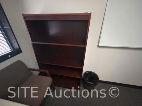 15 Desks, 16 Chairs, 7 Bookshelves, 10 Whiteboards, 4 Cabinets, 1 Framed Photo