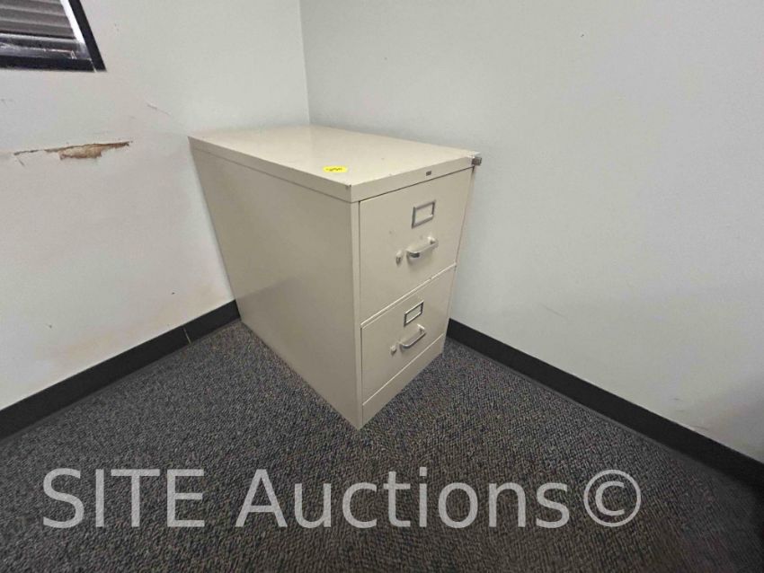 2 desks, 3 filing cabinets