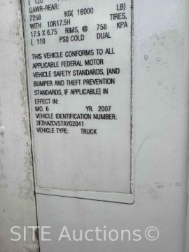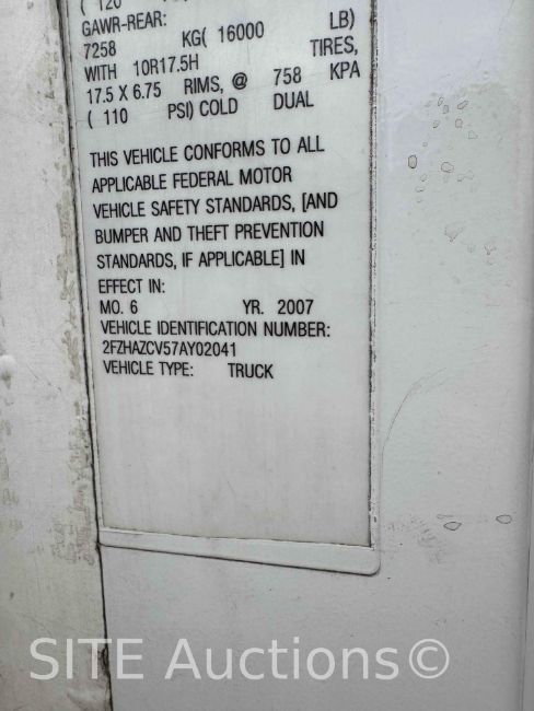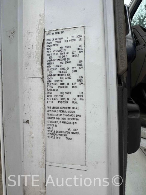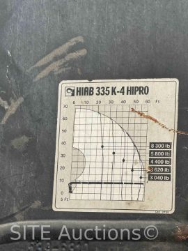 Mercedes-Benz MBE Diesel engine, 15 Spd, 2007 Hiab 335K-4 Hipro 56ft. 9in. max lift height & 8300lb. max lift capacity, S/N: 3350489, Outriggers, GVWR 66000, 450235 miles, VIN: 2FZHAZCV57AY02041