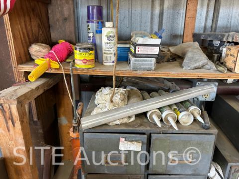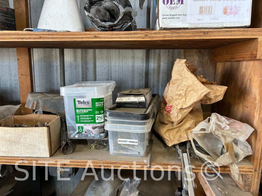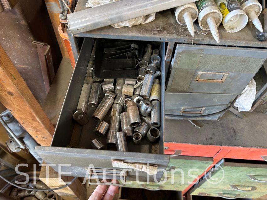 includes sockets of various sizes, fasteners, and other miscellaneous shop tools