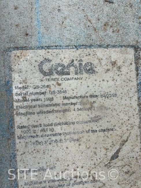Battery operated, 1000lb. max platform capacity, 26ft. max platform height, Reads 1036 hours, S/N: GS-3846