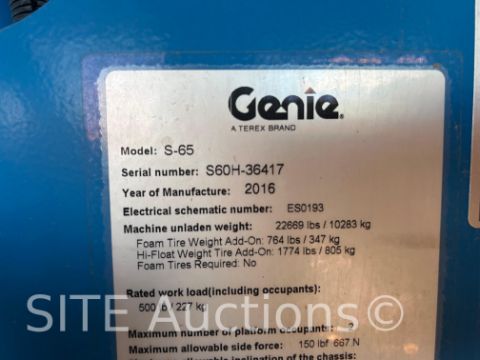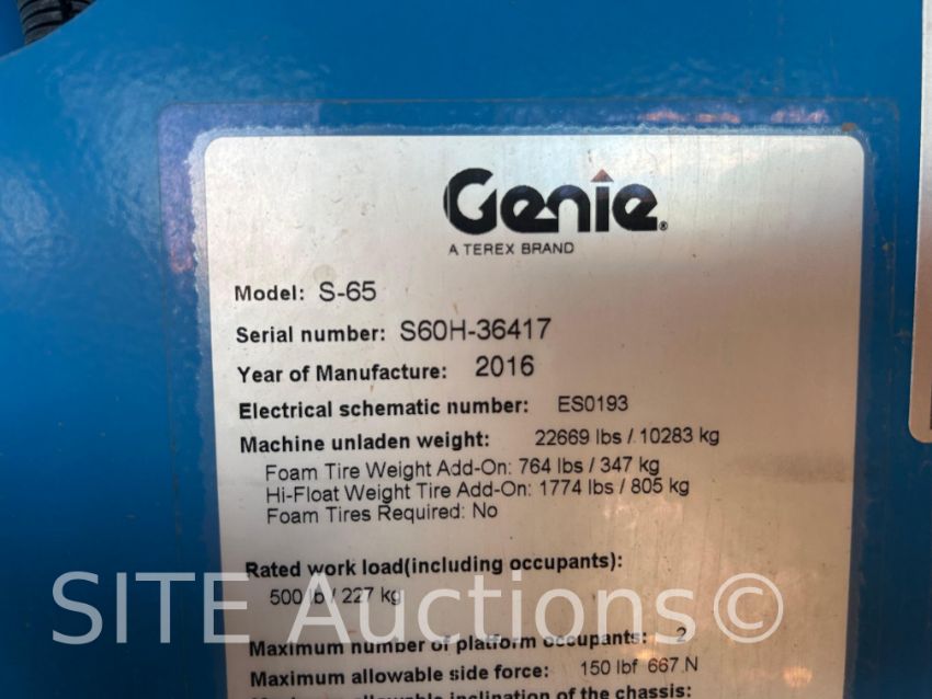 Ford LRG 425 EFI engine, 65ft. max platform height, Reads 741 hours, S/N: S60H36417