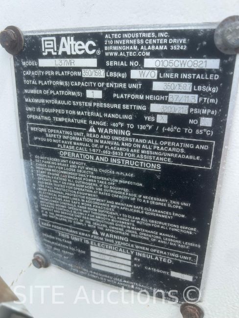 V8 6.0L Turbo Diesel engine, A/T, Altec L37MR w/ 37ft. max platform height, 126427 miles, VIN: 1FDAF56P05EB62558
