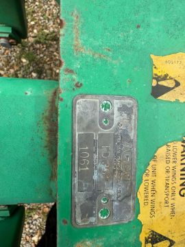 8 ft overall width, 21in. diameter, 8in. spacing, Disc scraping, Hydraulic lift, S/N: 1061