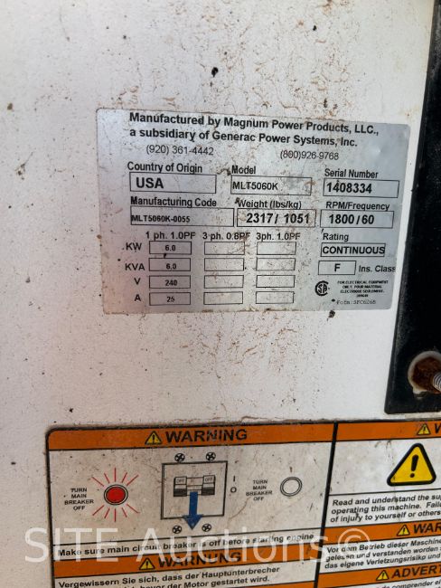 Kubota Diesel engine, 120/240V, 13545 hours, S/N: 1408334