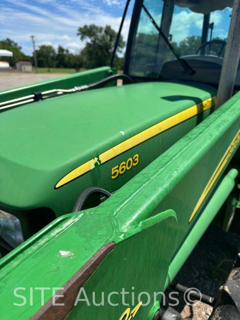 EROPS, A/C Cab, John Deere Diesel engine, 4WD, Power Shuttle Transmission w/ 12F-12R gears, 542 Loader, 3 set of aux hydraulics, Drawbar, PTO, 3 pt hitch, 3841 hours, S/N: LV5603R270272