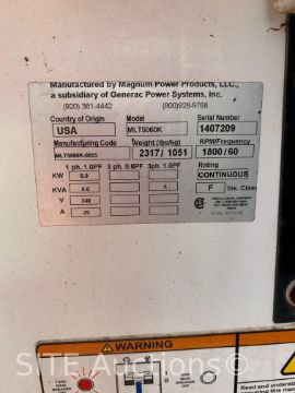 Kubota Diesel engine, 120/240V, 7901 hours, S/N: 1407209