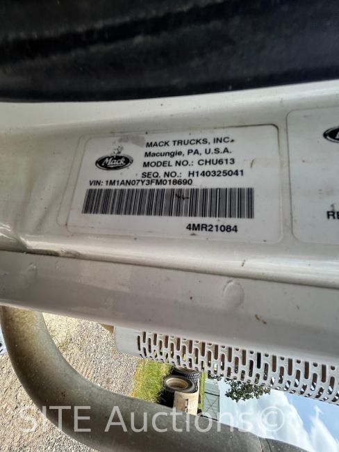 Mack MP8 Diesel engine, Deleted, Maxitorque ES 13 Spd, A/R Susp, 645687 miles, VIN: 1M1AN07Y3FM018690