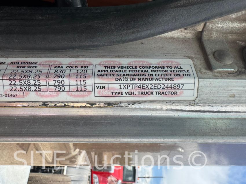 Cummins ISX15, 10 Spd, A/R Susp, 13221 fronts, 12350 steerable drop axle, 46000 rears, 71570 GVWR, 573314 miles, VIN: 1XPTP4EX2ED244897