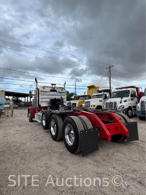 Cummins ISX 565HP Diesel engine, Eaton Fuller 18 Spd, Spring over Walking Beam Susp, Double frame, PTO, Wet kit, Diff lock, Engine brake, Dane drive axles, 4.30 ratio, 259in wheelbase, 12000lb front axle, Air lift pusher axle, 58000lb rears, GVWR 70000, 8785 hours, 586549 miles, VIN: 1XP5D40X67N667603, Rebuilt title