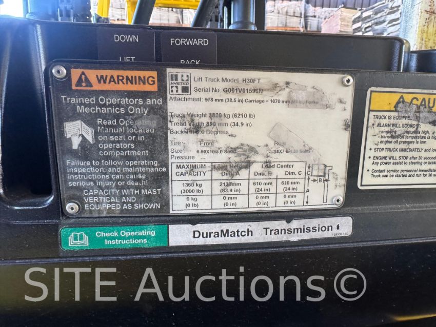 PSI LPG engine, 3000lb capacity, 27566 hours, S/N: G001V01596N