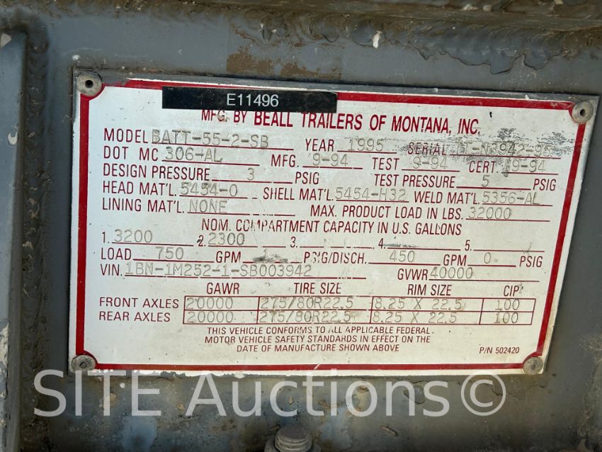 5500 gal capacity, 2 compartment, S/N: TTN394295