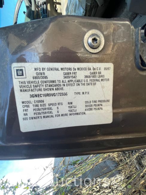 V8 5.7L Gas engine, A/T, 234222 miles, VIN: 3GNEC16R9VG172336, Non-Runner, Sold with Bill of Sale Only