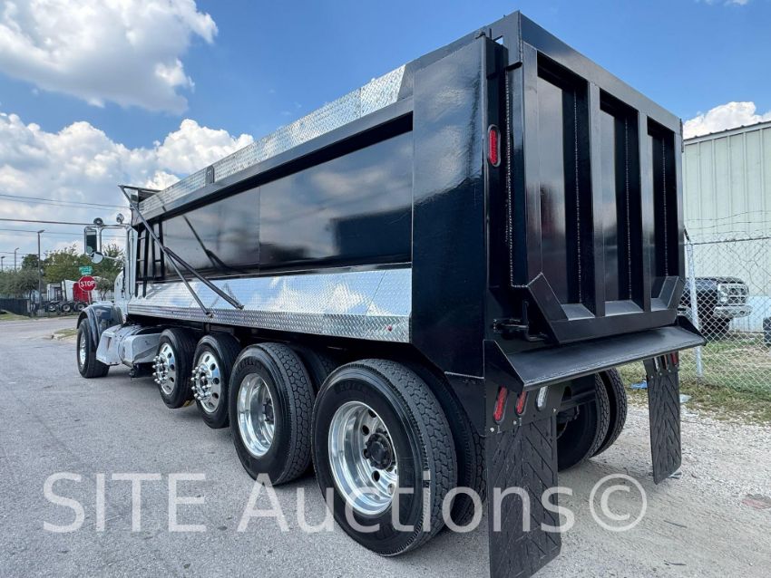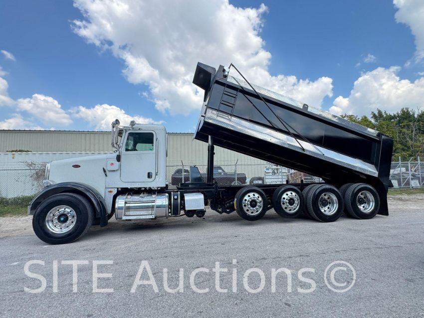 Cummins ISX15 425 HP, Eaton Fuller 8LL, A/R Susp, 20000 Fronts, 46000 Rears, 13000 Lift axles, Dual steering, Double frame, New Steel dump body, New rubber, Aluminum wheels, 109163 miles, 9000 hours, VIN: 1NPSL70X0DD197698