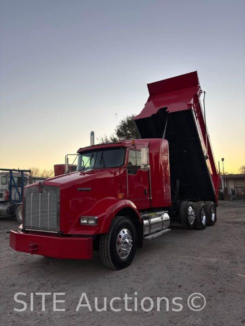 CAT C13 Diesel engine, Eaton Fuller 10 Spd, A/R Susp, Flat top sleeper, PTP, 16ft. New Semi round dump bed, 12000lb. front axle, 12000lb. pusher axle, 44000lb. rears, GVWR 68000, 70385 miles, VIN: 1XKDDU9X3BJ281984