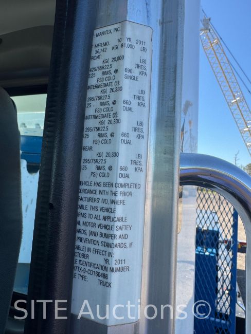 Cummins Diesel engine, Eaton Fuller 15 Spd, A/R Susp, Factory tri-drive, Manitex 35124C Crane w/ 35 ton capacity and a 5-section 124ft. boom, S/N: 187960, Basket attachment, Outriggers, GVWR 81000, 6760 hours, 150918 miles, VIN: 1NPTX7TX9CD160488, Rebuilt title