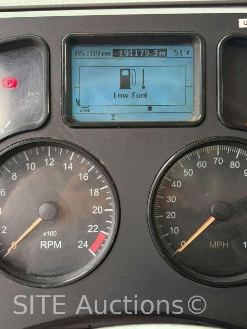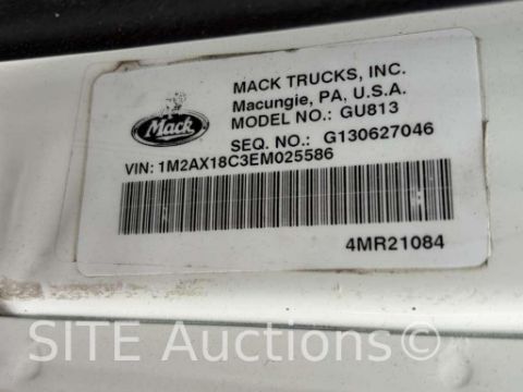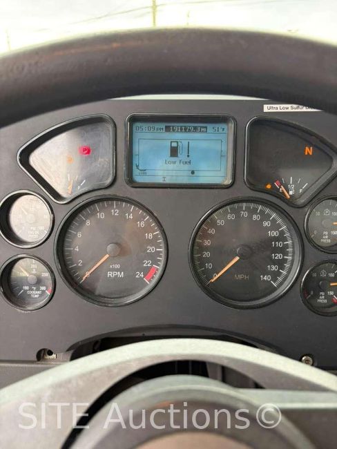 MP8, A/T, Hendrickson Haulmaxx Spring Suspension, 20000 fronts, 44000 rears, 13000 steerable lift axle, demo box, electric tarps, PTO, 191171 miles, VIN: 1M2AX18C3EM025586