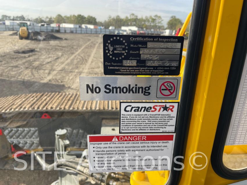Cummins Diesel engine, 130 ton capacity, 131ft. boom, 26 ft offset jib, Hydraulic extending undercarriage, Hook block, 4061 hours, S/N: 1305206, Annual inspection good through 5/2026