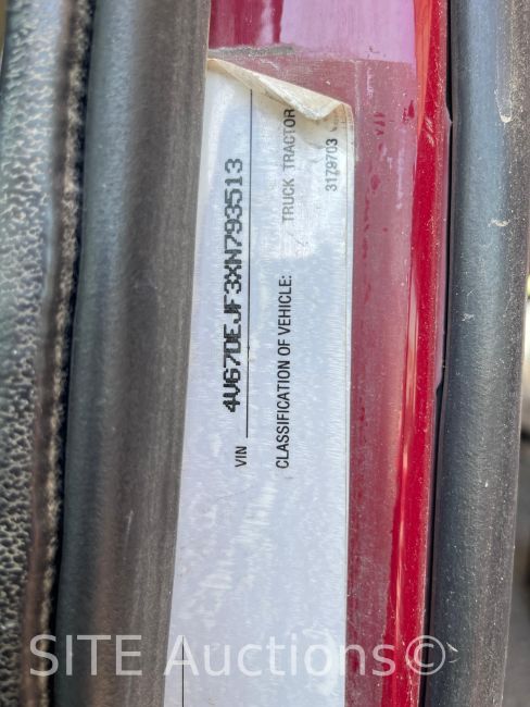 Cummins N14 Diesel engine, Rockwell 10 Spd, A/R Susp, Sleeper, GVWR 50350, VIN: 4VG7DEJF3XN793513