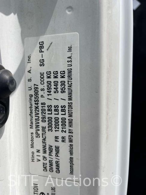 Hino Diesel engine, A/T, GVWR 33000, VIN: 5PVNV8JV2K4S59097