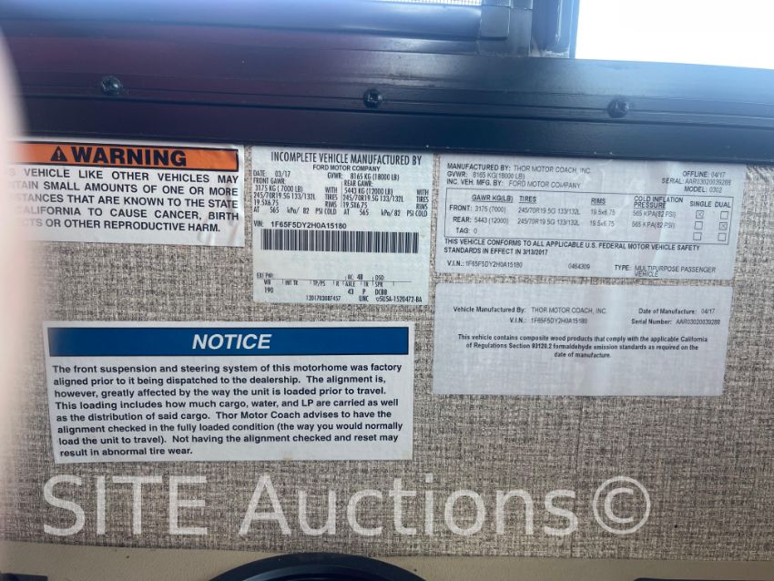 V10 6.8L Gas engine, A/T, New tires, Onan 4KY-6747R Generator, New battery, 4 new TVs, New seats & sofa, Electronic leveling, New awning & frame, Very good condition, 73036 miles, VIN: 1F65F5DY2H0A15180
